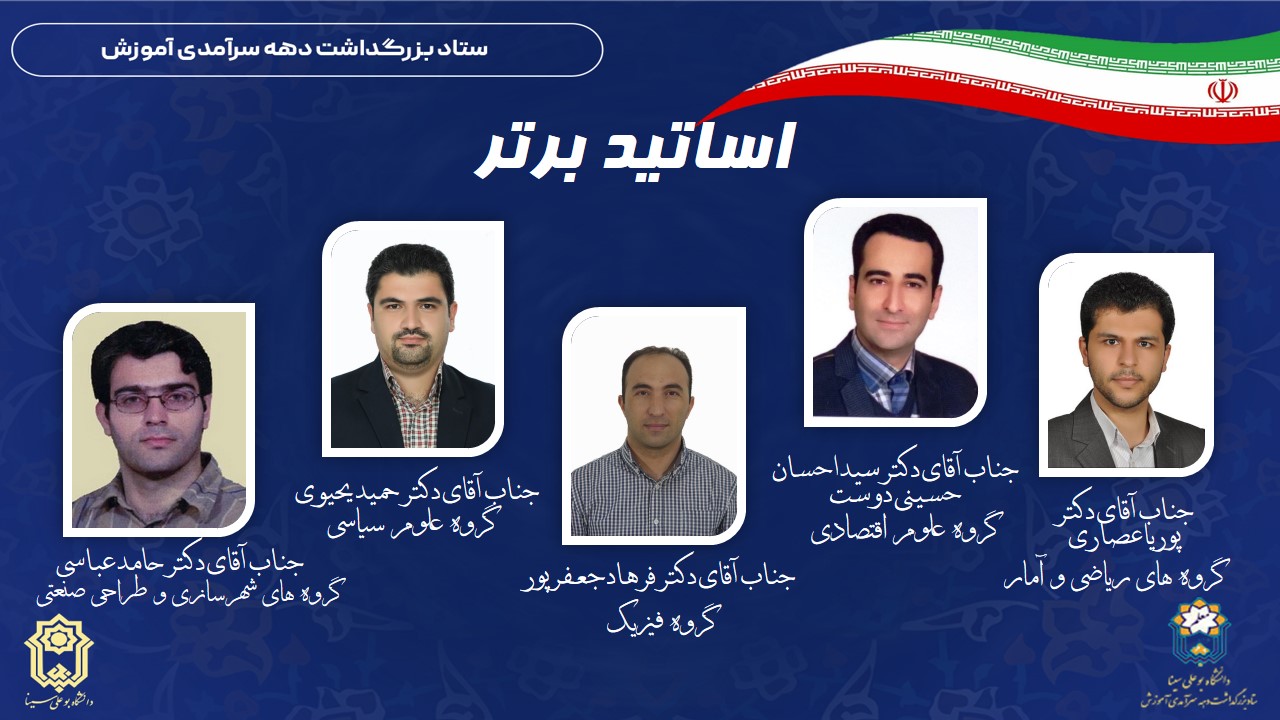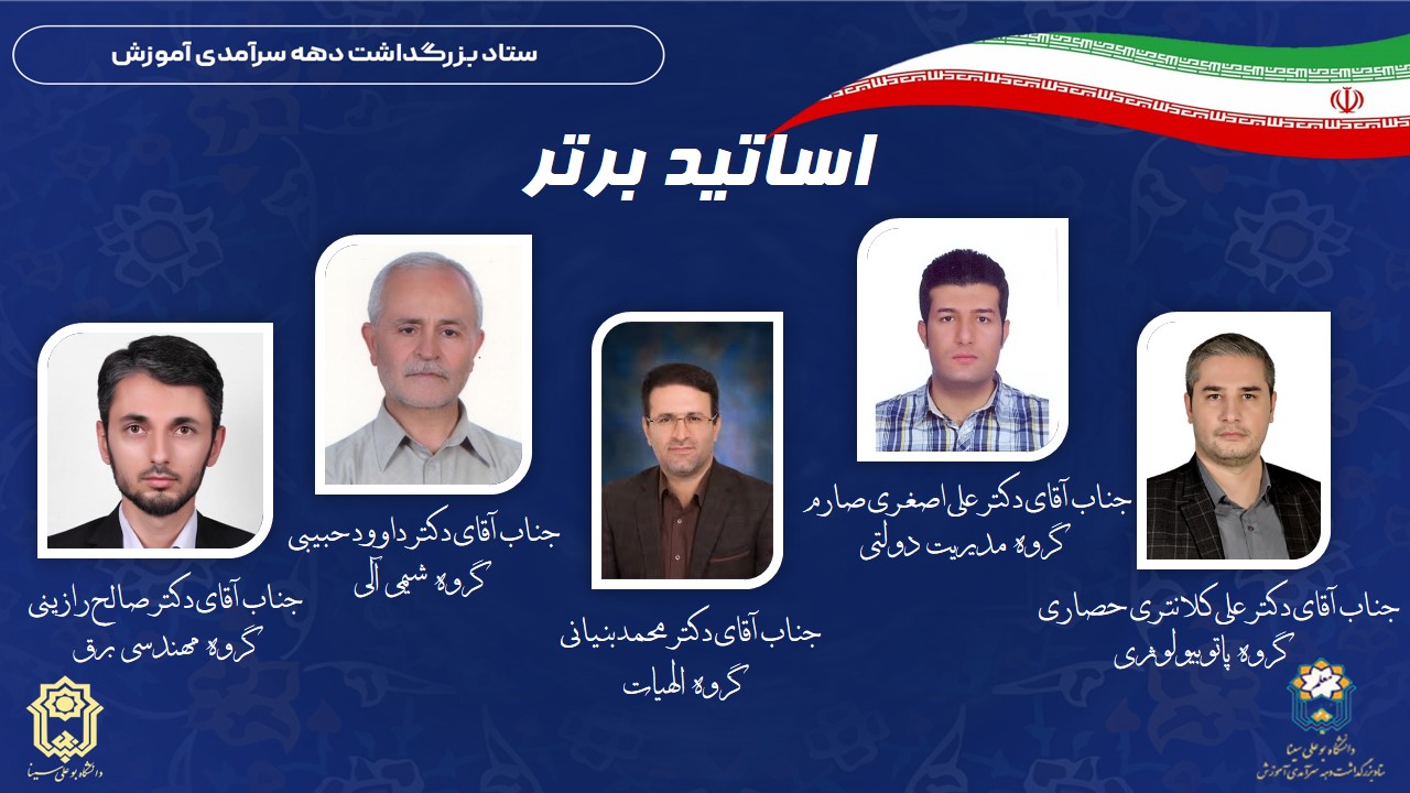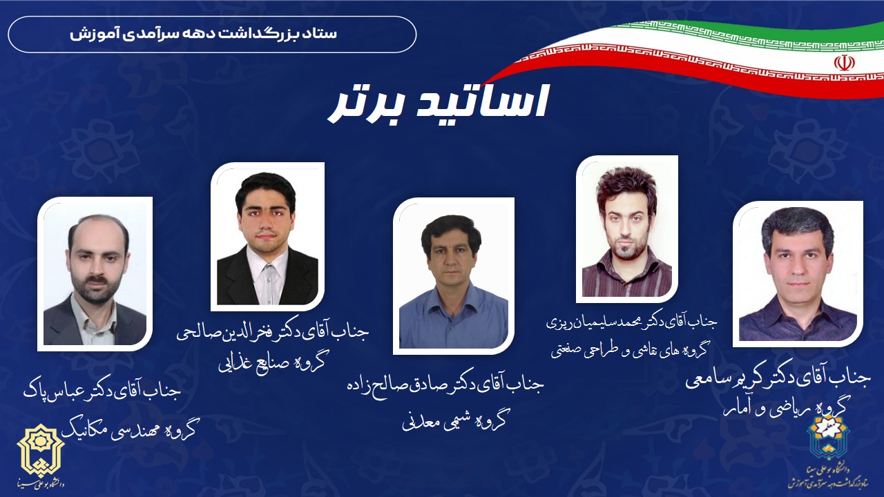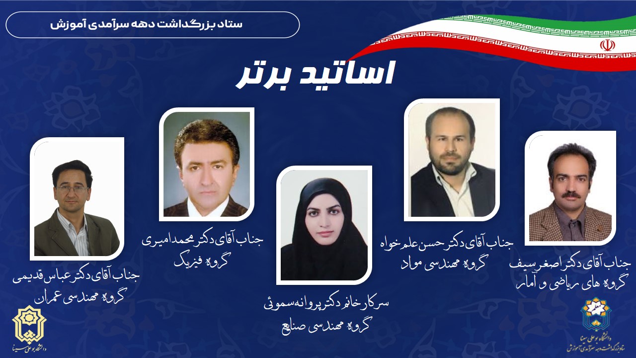 در ادامه مراسم از اعضای هیات علمی برتر در گروه های مختلف با اهدای لوح سپاس تقدیر بعمل آمد.
