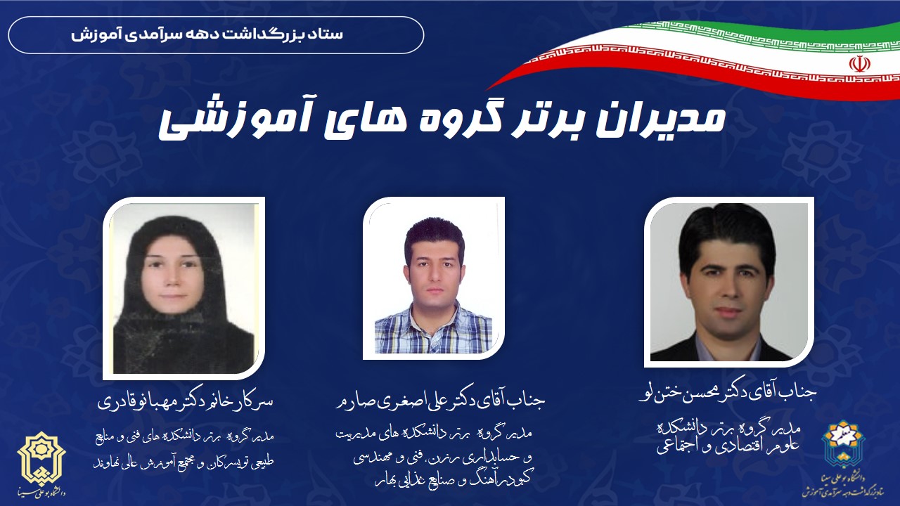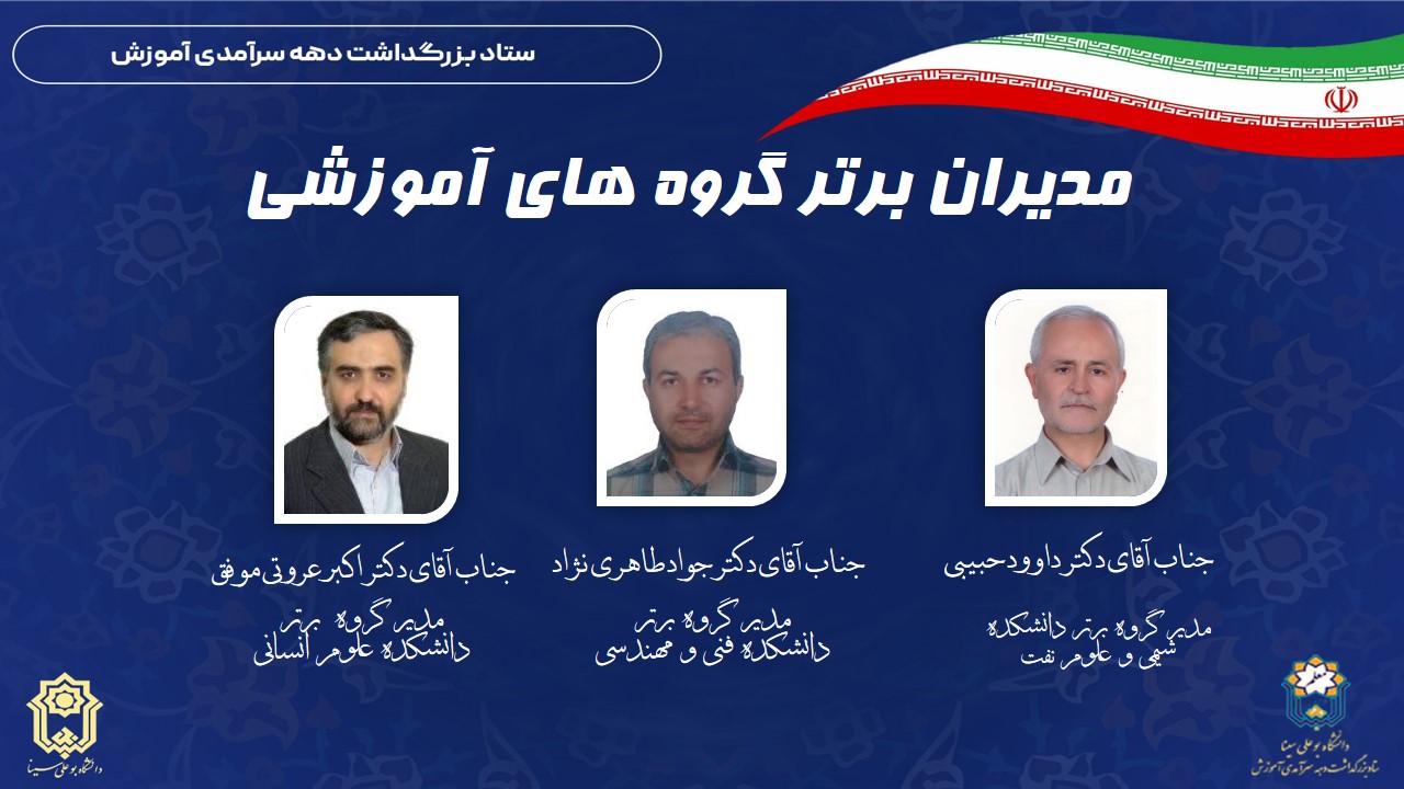 مراسم اختتامیه دهه سرآمدی آموزش دانشگاه بوعلی سینا با شعار «آموزش، اساس تحول و پیشرفت» از ۸ الی ۱8 اردیبهشت ماه برگزار شد