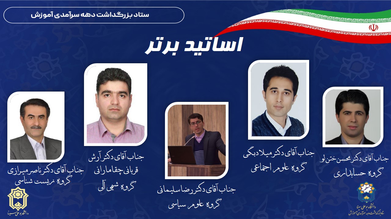 در ادامه مراسم از اعضای هیات علمی برتر در گروه های مختلف با اهدای لوح سپاس تقدیر بعمل آمد.