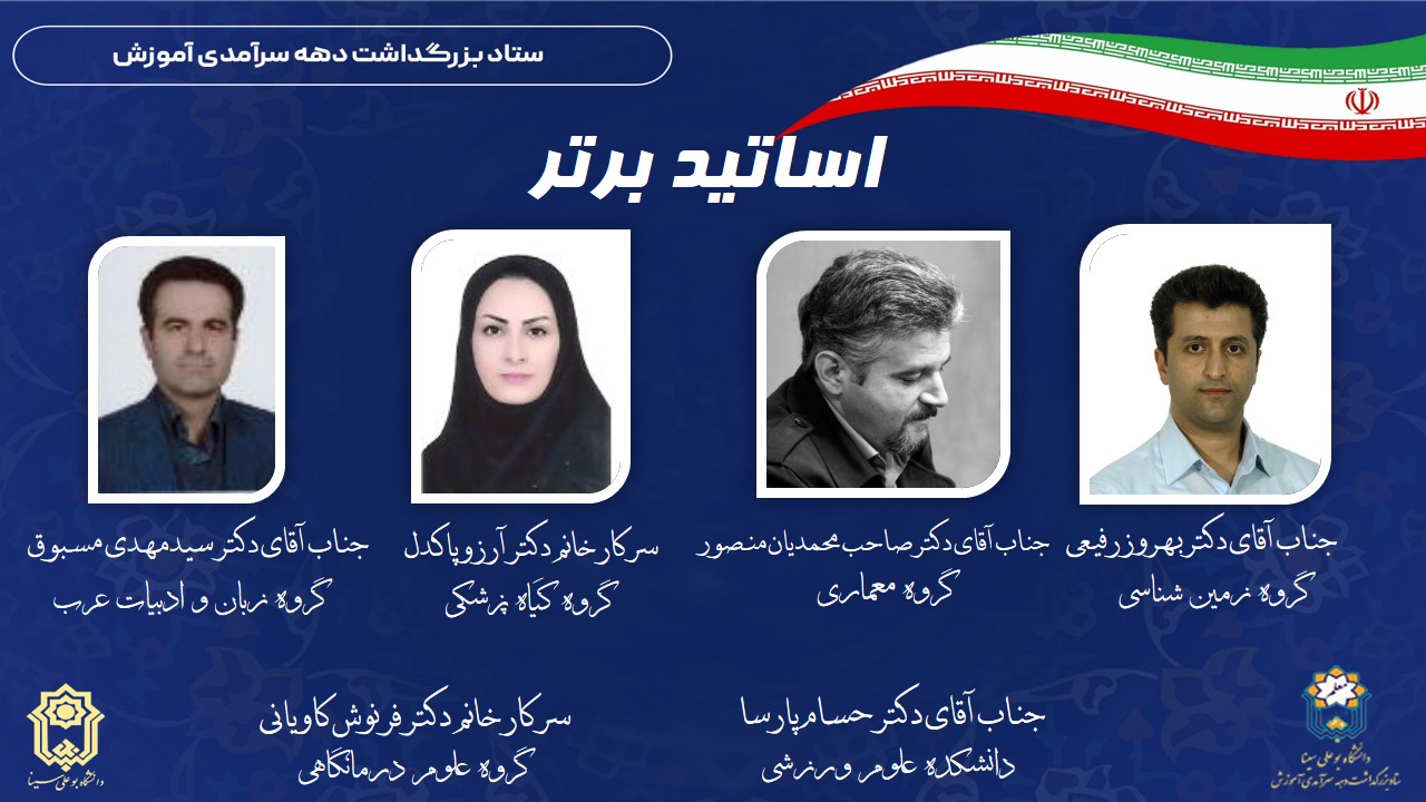 در ادامه مراسم از اعضای هیات علمی برتر در گروه های مختلف با اهدای لوح سپاس تقدیر بعمل آمد.
